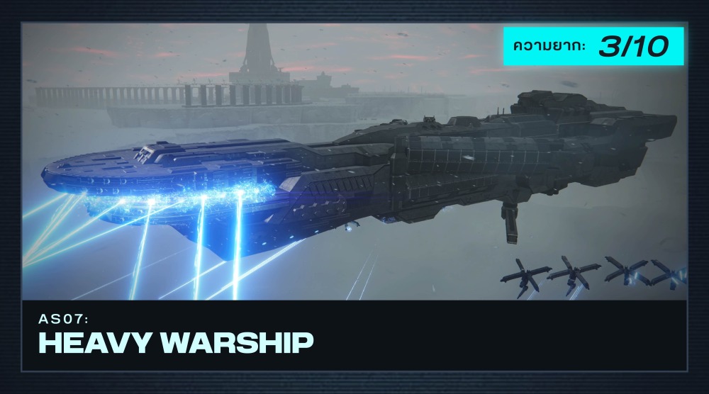 - หลังจากภารกิจนี้ เราจะได้เจอ HEAVY WARSHIP อีกหลายรอบ กลยุทธ์จะเหมือนกันตลอด คือกด Assault Boost ขึ้นไปทำลายใจกลางได้เลย อย่างอื่นไม่ต้องสนใจ