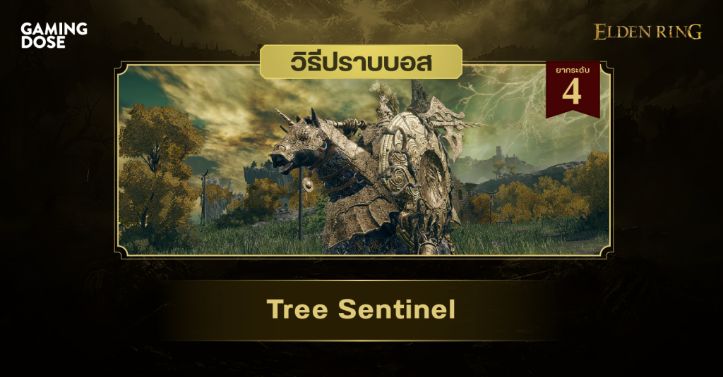 - เมื่อพ้นประตูไปแล้ว ด้านหน้าจะมี Site of Grace (พร) อยู่ ให้กดนั่งพักเพื่อตั้งหลัก และรีเซ็ตบอส กรณีที่มันวิ่งตามเรามา