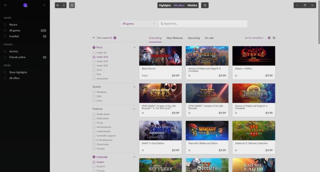 ที่สำคัญไปกว่านั้นคือมันมีฟีเจอร์ที่ครบเครื่อง และบางฟีเจอร์ที่แทบจะละเอียดกว่า Steam ด้วยซ้ำ (ละเอียดกว่า ไม่ได้หมายความว่าภาพรวมจะดีกว่า) ก่อนอื่นเลยคือ GOG Galaxy เองก็เป็นแพลตฟอร์มที่เป็น Digital Store หรือร้านตัวแทนจำหน่ายที่นำเกมต่าง ๆ มาขาย เกือบ 70-80% ของเกมบางเกมที่เราพบเจอจากร้านค้าอื่น GOG Galaxy เองก็มีเช่นกัน แต่ข้อเสียของมันคือมันยังไม่มีราคาโซนไทย และเทศกาล Sale ก็ยังไม่โหดเท่า Steam โซนไทยอยู่ดี