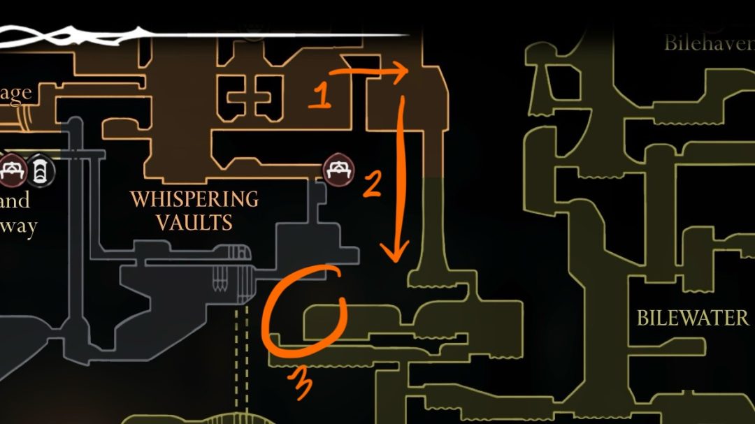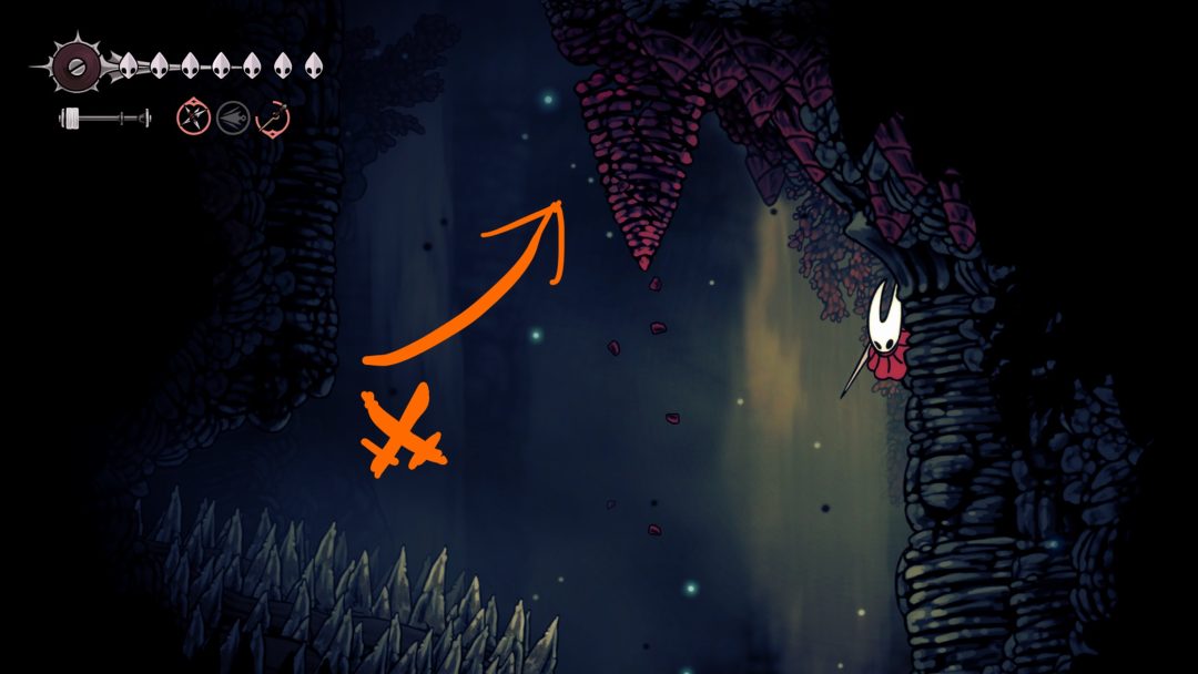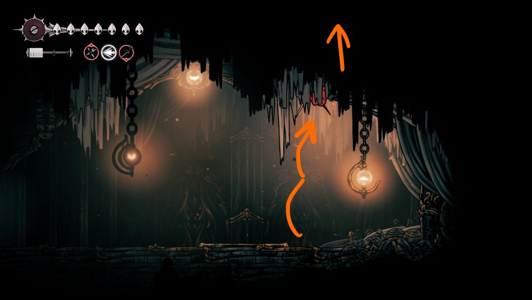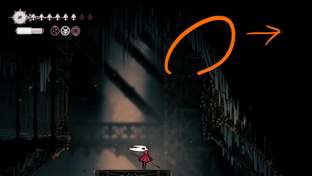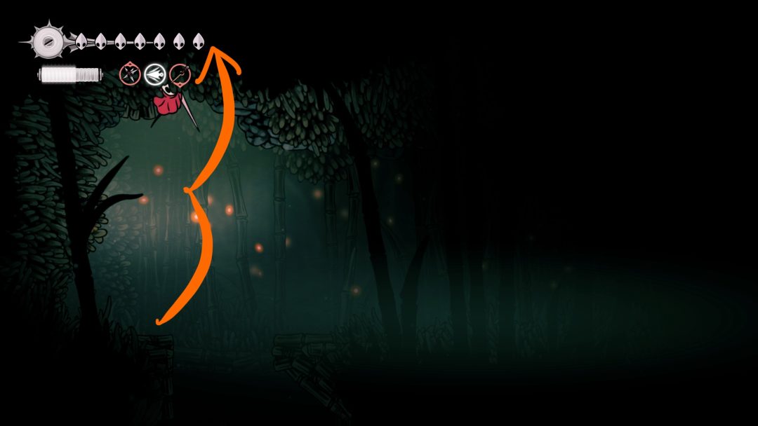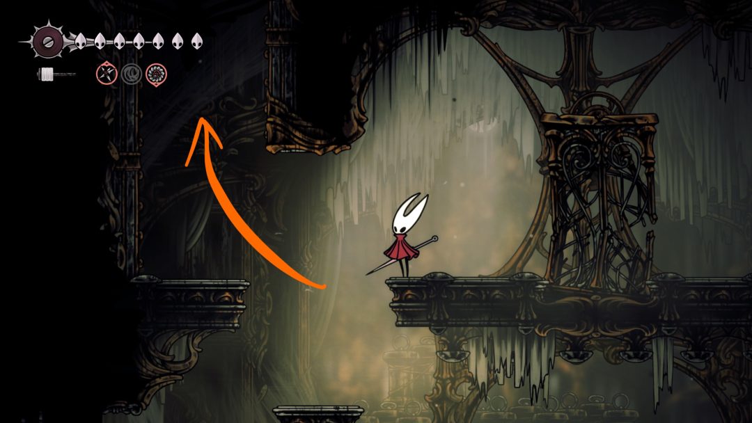 - เมื่อได้รับ Soul ครบแล้ว ให้ไปที่ด่าน WEAVENEST ATLA (เข้าได้จากด่านแรกสุด MOSS GROTTO, ที่ต้องดีด Needolin เพื่อเปิดประตู) เมื่อมาถึงจุดเซฟชั้นล่างแล้ว ให้ขึ้นไป 1 ชั้นข้างบน จะมีทางลับให้เข้าไปเก็บไอเท็มชื่อ “Snare Setter” มาจากในนั้น โดยผู้เล่นจำเป็นต้องมีท่ากระโดด 2 จังหวะก่อน (ปลดล็อคได้จากการสำรวจด่าน MOUNT FAY)
