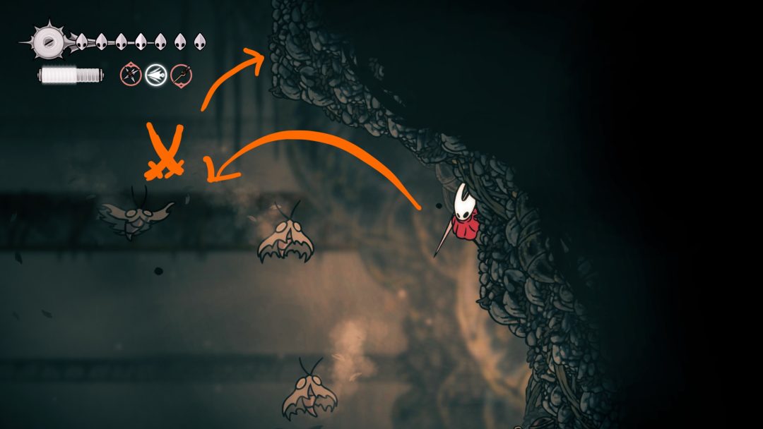 - วิธีเอาตัวรอดในฉากนี้ กรณีที่ HP เหลือน้อย คือให้มองหาตัวหนอน (ที่พุ่งมาเรื่อย ๆ เป็นอุปสรรคขวางทาง) แล้วไปยืนริม ๆ มัน แล้วโจมตีใส่มัน แม้ว่าหนอนพวกนี้จะไม่ตาย แต่เราจะได้รับเกจเส้นไหมจากการโจมตีด้วย ทำให้เอามาใช้ฟื้น HP ได้ทุกเมื่อที่ต้องการ
