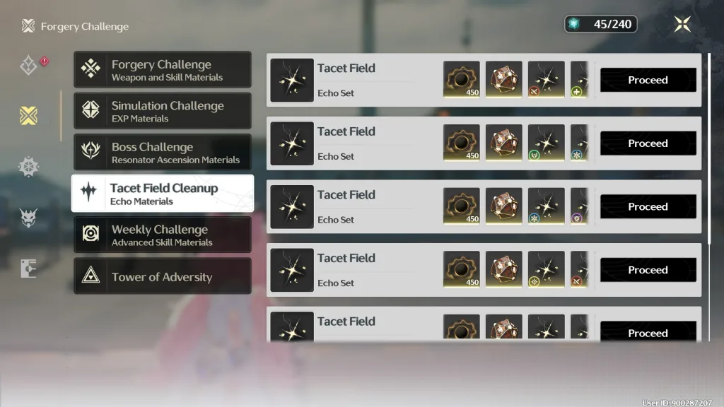 หลังจากได้ Echo ออปชั่นดี ๆ มาแล้ว สิ่งที่ต้องตามมาก็คือวัตถุดิบสำหรับใช้ในการอัปเกรด นั่นคือของจำพวก Sealed Tube หรือน้ำยาเพิ่มค่า EXP ของ Echo โดยสามารถหาได้จาก Tacet Field ที่กระจายอยู่ทั่วทุกพื้นที่ในเกม โดยความพิเศษของ Tacet Field นั้น นอกจากจะได้ Sealed Tube แล้ว ยังมีโอกาสได้ Echo Set โดยไม่ต้องไปวิ่งฟาร์มด้วย แต่จะแยกเป็นเซ็ทและธาตุของตัวเอง อยากได้ธาตุไหนก็ไปฟาร์มตรงจุดนั้น