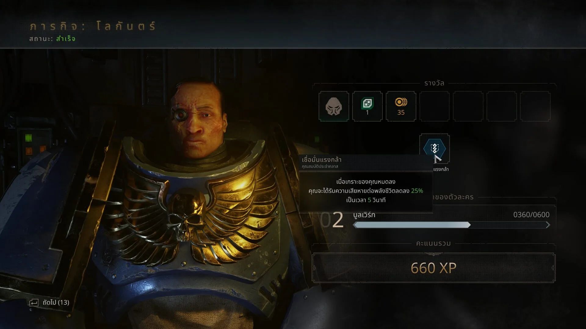 นอกจากนั้นตามฉากเกมการเล่นต่าง ๆ เราจะไปเจอพวกกระดานเสียงที่เป็นข้อมูลเสริมต่าง ๆ เกี่ยวกับเรื่องราวและสิ่งที่เกิดขึ้นในเกมภาคนี้ด้วย ซึ่งเมื่อเก็บแล้ว มันจะกลับไปอยู่ที่ยานรบหลักเรา สามารถไปฟังหรืออ่านซ้ำได้เลย เพิ่มความอิน ความเข้าใจ หรือ..อาจจะเป็นการเพิ่มความงงให้กับผู้เล่นบางคนก็ได้อีก แต่อันนี้สำหรับผมเป็นการส่วนตัวเลย การที่ผมไม่เคยเล่น Warhammer มาก่อนเลย ไม่เคยเล่น Space Marine ภาคแรกมาด้วย แต่ช่วงกลางเกม มันทำให้ผมฮึกเหิม ตื่นเต้น อิมแพค และอยากติดตามเนื้อเรื่องต่อ แม้จะยังไม่เข้าใจจักรวาลนี้ ผมคิดว่ามือเขียนบทเกมภาคนี้ ทำหน้าที่ได้สำเร็จลุล่วงแล้ว