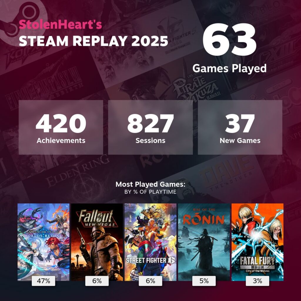 เช็กกันได้แล้วว่า ในช่วงปี 2025 ที่ผ่านมานี้ เราได้เล่นเกมอะไรไปบ้าง และใช้เวลากับเกมไหนเยอะที่สุดบน Steam ในปีนี้